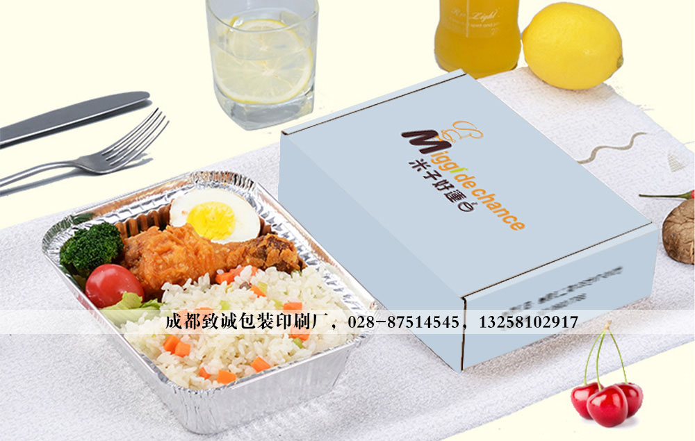產品工藝:手提袋封面彩色印刷覆亞膜、模切、制袋、串繩;餐盒封面彩色印刷覆亞膜、模切